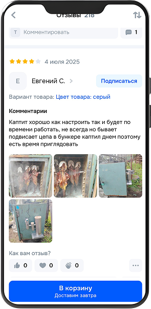 Камера для копчения предназначена для совместного использования с дымогенератором. Продукты подвешиваются на крючках ( в комплекте), которые крепятся к двум планкам. Решетка приобретается отдельно.