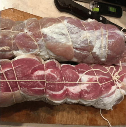 Солим 7–10 дней. Обмываем, оборачиваем тканью, вывешиваем на просушку на 5–7 дней. Обвязываем жгутом, коптим 5–7 суток. Оставляем в камере на 3 дня и выдерживаем ещё 24 часа в холодильнике.